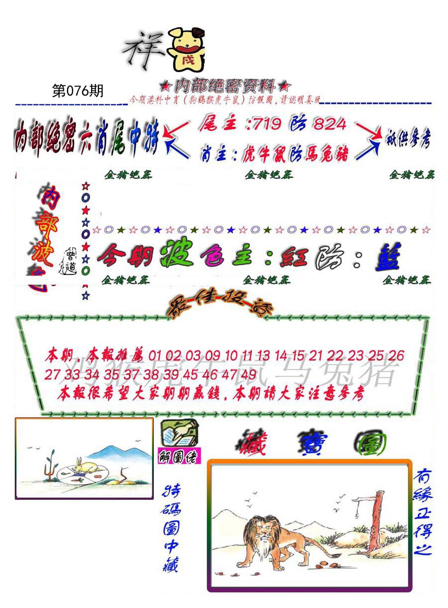 | 076期: 六尾中特 〖8尾 2尾 4尾 9尾 6尾 7尾〗开:?? |