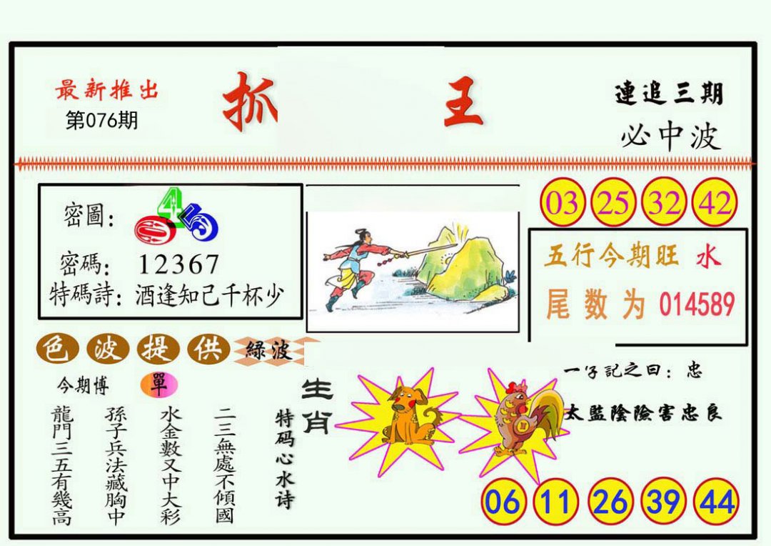 | 071期: 六尾中特 〖6尾 4尾 1尾 9尾 3尾 0尾〗开:16准 |